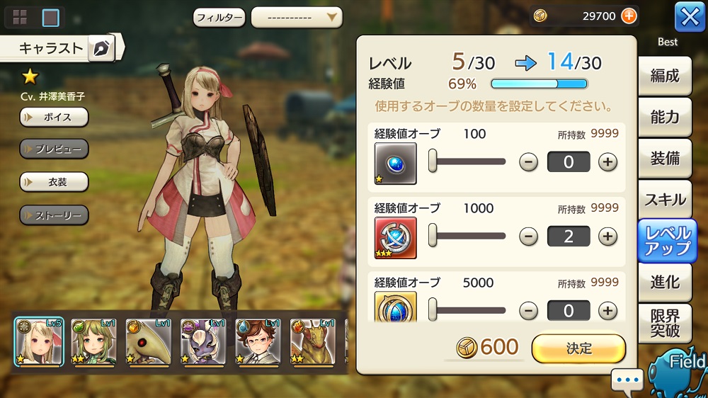 | BP | BPとはキャラクターの戦闘力です ステータスやスキルレベルなどが上昇すると、BPも上昇します |