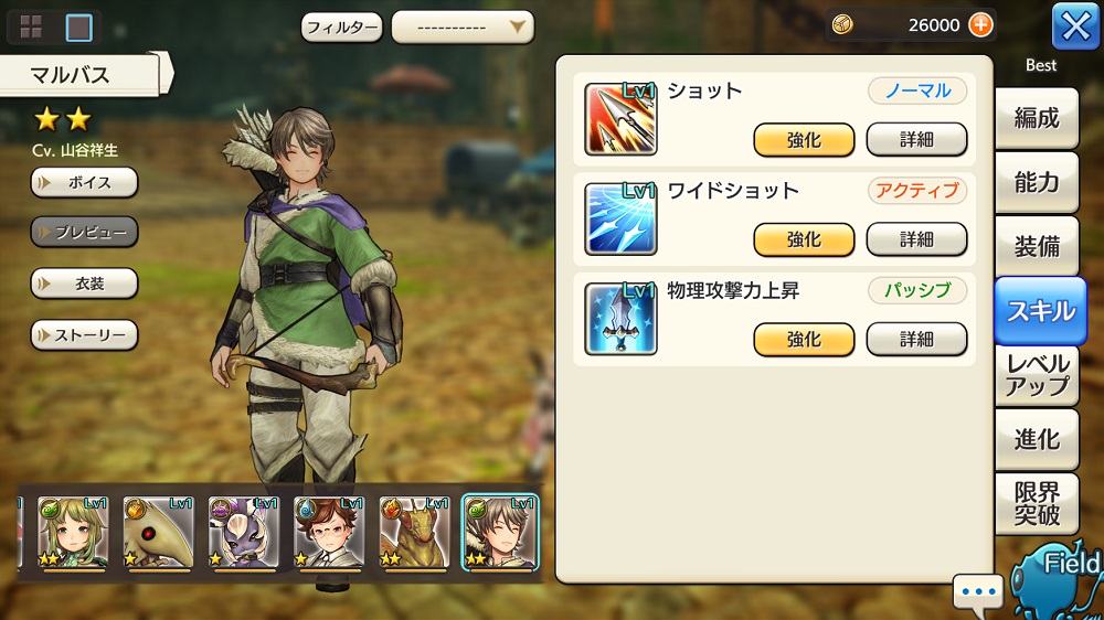 パッシブスキルを開放するには、キャラクターのレアリティを☆2以上にする必要があります。