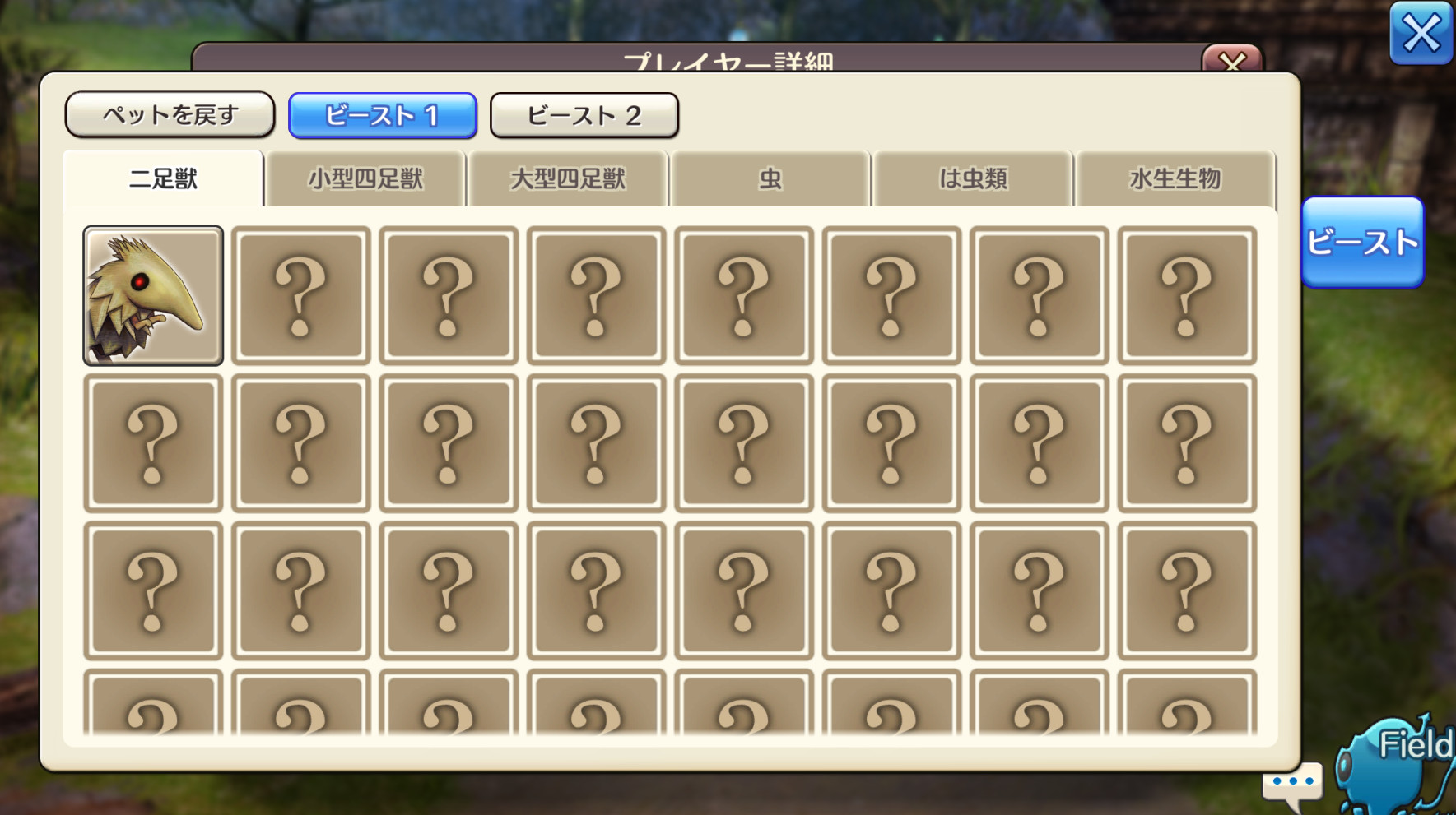 仲間になる可能性のあるビーストはフィールド上で名前の脇に鳥かごマークが表示されます。