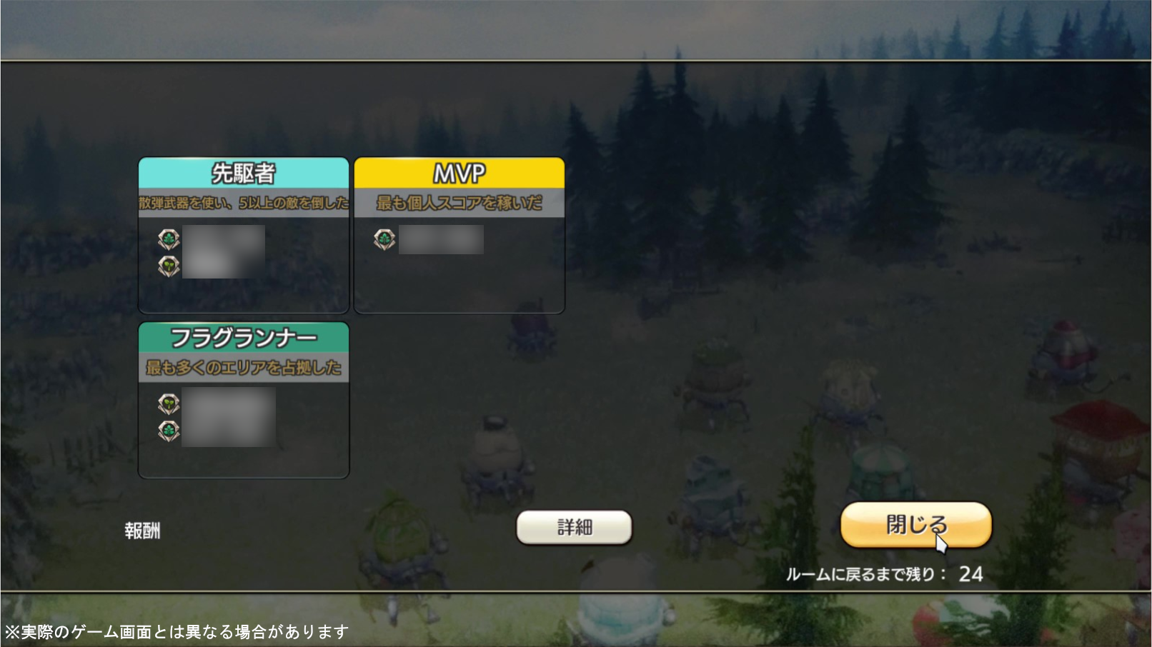 ・ゲームが始まるとステージ上に存在する拠点が魔獣に占領されてしまい、これにより撃破目標であるボス魔獣の防御力が極めて上昇するバフが掛かっています。