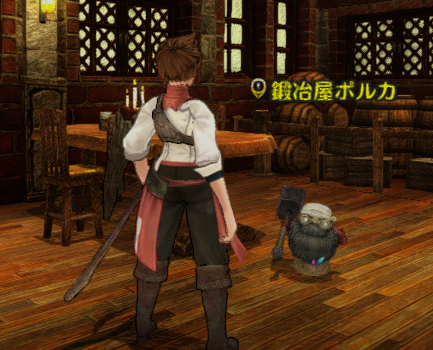 「欠片合成」はネロ酒場内にいる「鍛冶屋ポルカ」にて行うことができます。