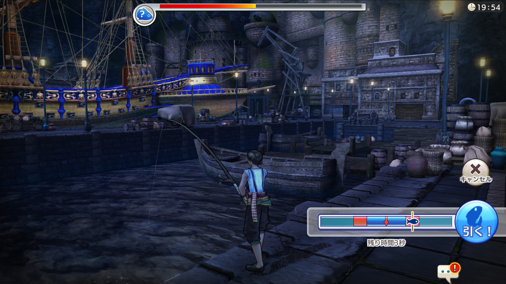 魚がエサに食いついたら、魚を引くゲージが表示されます。