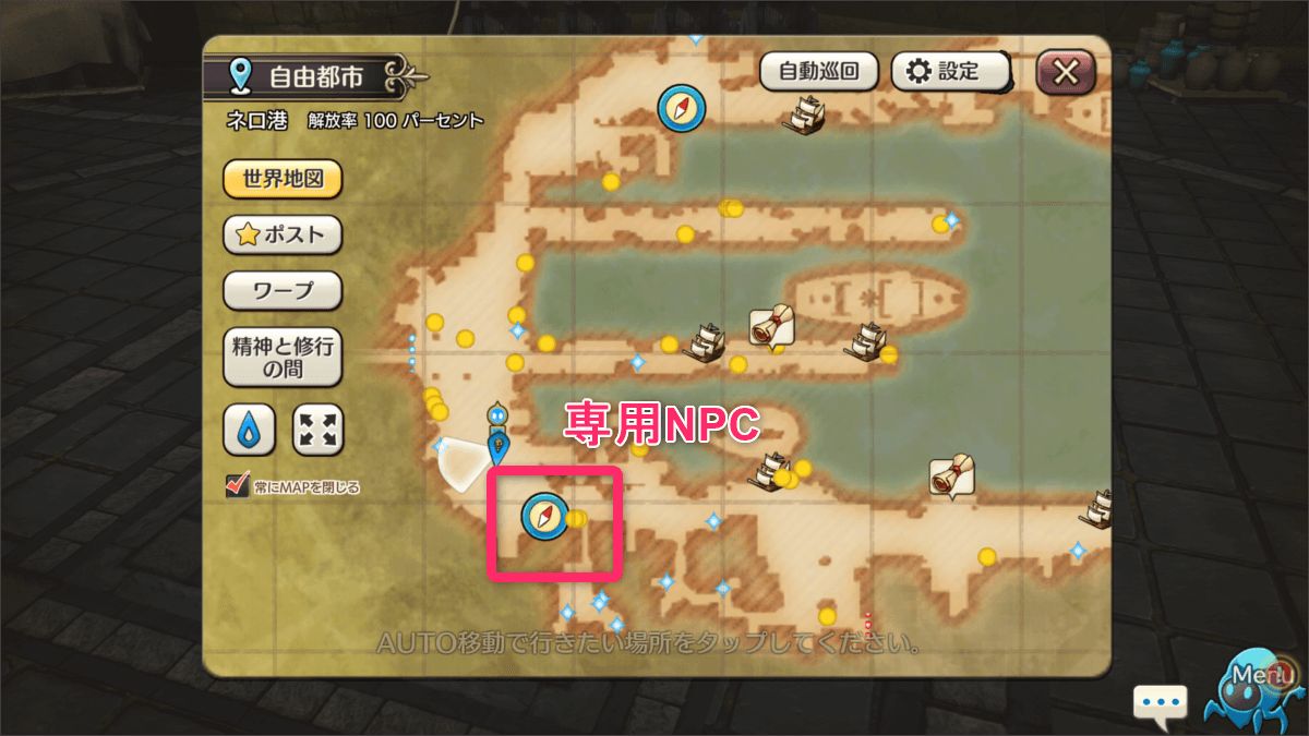 ロイヤルパスを所持した状態で、ネロ港の専用NPCに話しかけることでロイヤルパスエリアに移動できます。