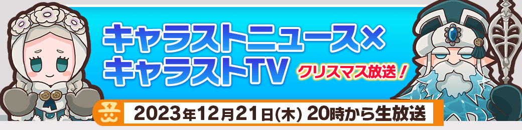ゲームのアップデート情報を先取り配信する生放送『キャラバンストーリーズニュース』の第68回放送とキャラストTVの合同クリスマス放送が決定いたしました!